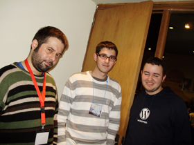 Aquí temos de visita no acubillo vieiresco da ciberfesta a tres insignes representantes da esfera internáutica do país. De esquerda a dereita, Berto Yáñez, de Chuza.org, Héctor Anllo, mantedor da bitácora Anllo.eu e Andrés Milleiro, promotor de Trebellos.org.